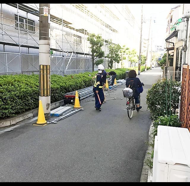 一般的な交通誘導業務です。当社は電気工事が主ですが、ガス工事現場の警備誘導業務も多いです。